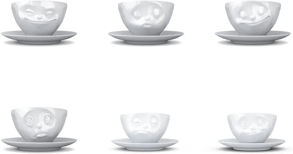 1 x Tasse grinsend weiss – Tassen by FIFTYEIGHT PRODUCTS – T014101 (Fassungsvermögen ca. 200 ml)