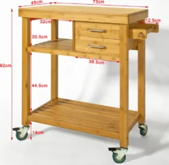 SoBuy Servierwagen,Bambus Küchenwagen,Rollwagen M. Schublade FKW26-N