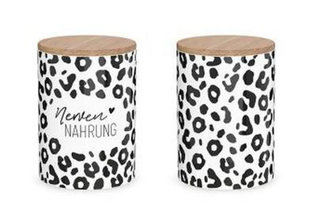 Vorratsdose Nervennahrung aus Keramik mit Holzdeckel und Silikondichtung, Ø 11 cm, Höhe 16 cm, , Füllmenge: 1 l Lieferumfang: Dose mit Deckel