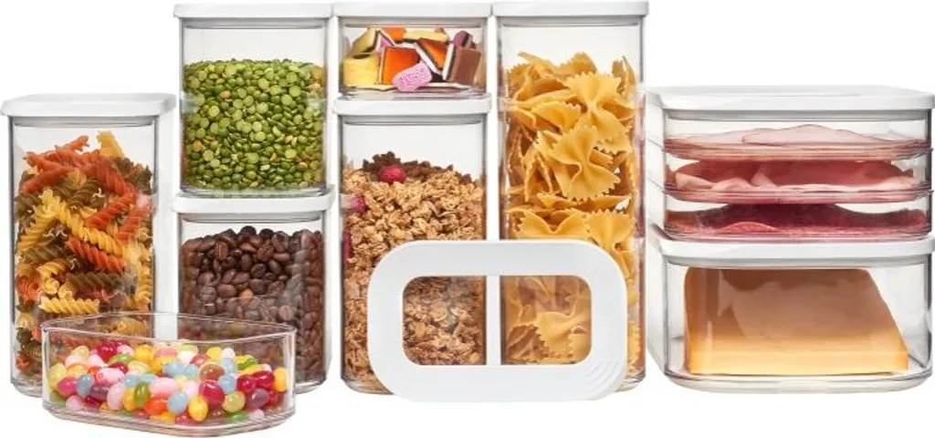 9-teiliges Set mit Modula Aufbewahrungsdosen. Dieses besondere Geschenkset beinhaltet: 1x Vorratsdose 2000 ml, je 2x Vorratsdosen mit 1000 ml, 1500 ml und 425 ml sowie je 1x Käsedose und 3-lagige Aufschnittdose. Die Modula überzeugt vor allem durch ihr funktionales, zeitloses Design. Wir haben die Dosen so entworfen, dass man durch die transparenten Behälter und Deckel jederzeit einen Blick auf den Inhalt und die Vorräte hat. Der in den Deckel integrierte Dichtungsring schließt die Dosen perfekt ab, dadurch eignen sich die Modula Vorratsdosen ideal für die Aufbewahrung von trockenen Lebensmitteln, wie etwa Pasta, Mehl, Zucker oder Kaffeebohnen. Die Kühlschrankdosen der Modula-Serie bieten sich perfekt für die Aufbewahrung von Wurst, Aufschnitt und Käse an. Die Modula Aufbewahrungsdosen liegen gut in der Hand und lassen sich leicht öffnen. Mit der Modula hat man seine Vorräte immer im Blick!