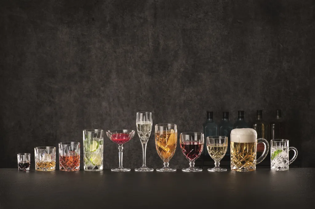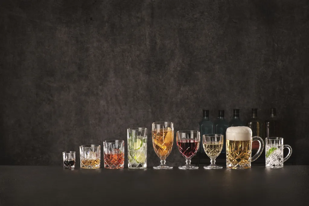 Filigranes Schliffdekor und kristallklare Brillanz, dafür stehen die Produkte der vielfältigen Serie Noblesse von Nachtmann. Ob Whiskybecher, Bierkrüge, Cocktail- und Longdrink-Gläser oder Sektkelche – mit den Noblesse-Glaswaren richten Sie Ihre Hausbar besonders elegant und, wie der Name erahnen lässt, nobel ein. Perfekt abgestimmt auf die verschiedensten Aromen und Nuancen der Getränke können Sie und Ihre Gäste beim eleganten Dinner Ihre Lieblingsgetränke besonders exklusiv und mit allen Sinnen genießen.