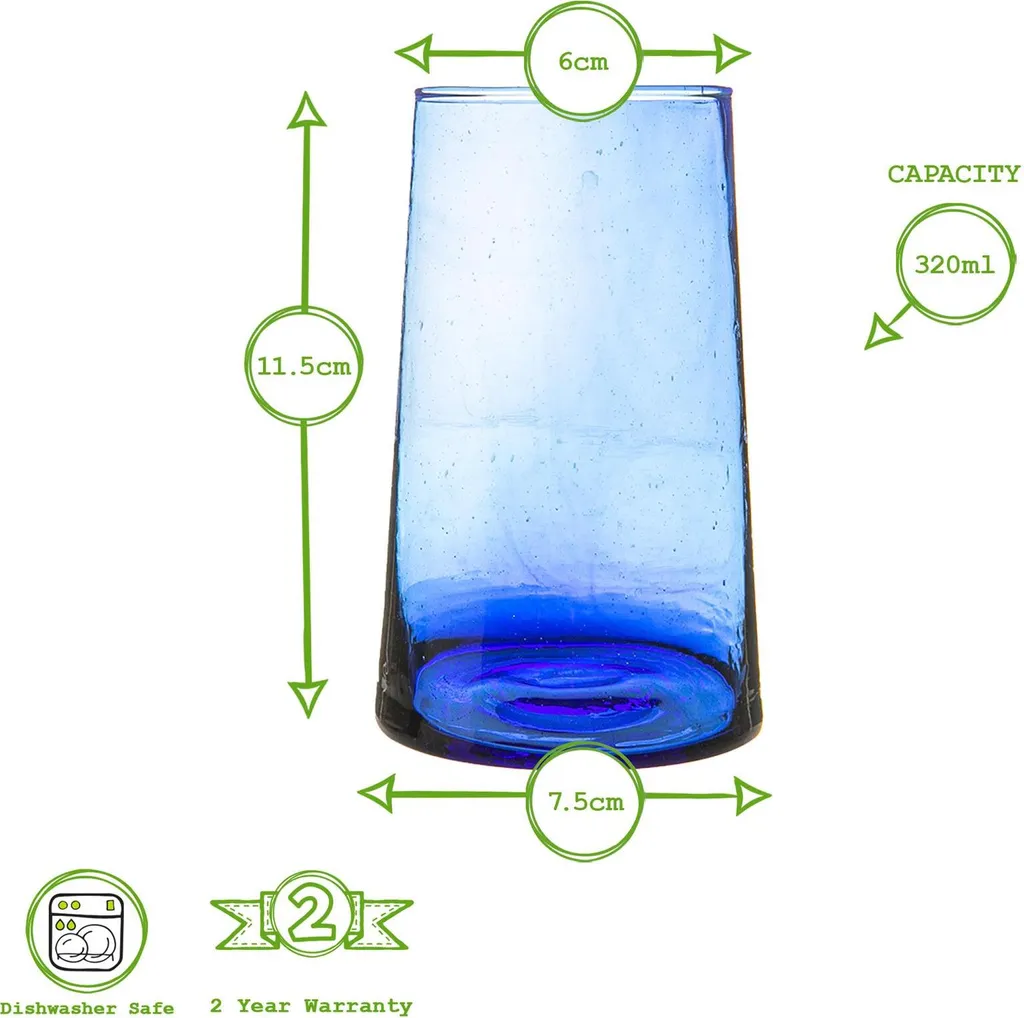 Nicola Spring 6 Stück Merzouga Recycled Longdrinkgläser Set – Trinkglas – 320ml – Blau