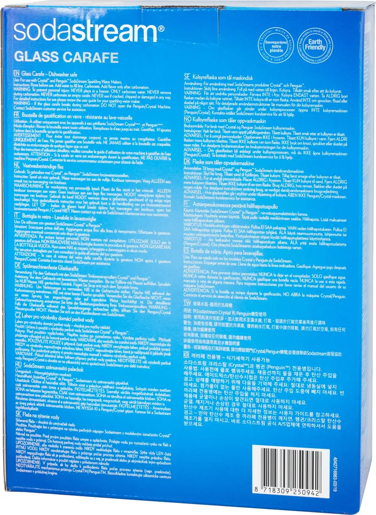 In einer SodaStream Glaskaraffe schmeckt das Sodawasser aus dem Trinkwassersprudler durchweg rein und natürlich. Beigeschmack, so beispielsweise Plastikgeschmack, war gestern. Die SodaStream Glaskaraffe im Duo-Pack ist die perfekte, qualitativ hochwertige Ergänzung zu dem SodaStream Crystal oder SodaStream Penguin Wassersprudler. Die Glaskaraffen passen in jede handelsübliche Kühlschranktür. Das reine, kristallklare Glas verspricht besten, unverfälschten Wassergeschmack. Auch enthält es keinerlei gesundheitsbedenkliche Stoffe. Dank des praktischen, einfach zu bedienenden Drehverschlusses können die Kristallflaschen nicht nur daheim verwendet, sondern auch unterwegs mitgenommen werden. Das SodaStream Glaskaraffe Duo-Pack – ein unverzichtbares, qualitativ hochwertiges Ersatzteil für jeden SodaStream Crystal oder SodaStream Penguin Wassersprudler!