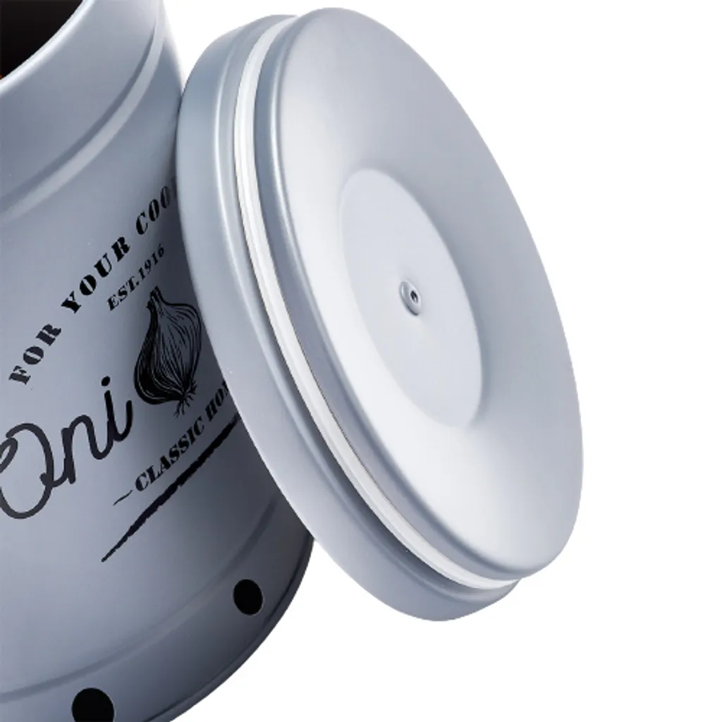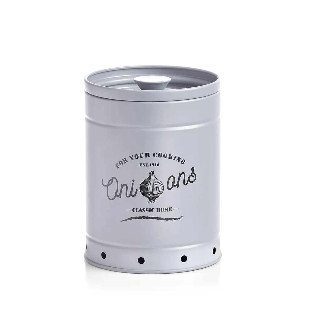 Die vielseitig einsetzbare Zwiebel steht bei fast allen herzhaften Gerichten auf der Zutatenliste. Daher lohnt es sich immer, einige der Knollen Zuhause zu haben. An Ihre Lagerung stellt das Gemüse allerdings Ansprüche: Für eine längere Lagerung muss die Zwiebel dunkel, trocken und möglichst kühl aufbewahrt werden. Mit dieser Vorratsdose erfüllen Sie ganz leicht die Wünsche des Gemüses und holen sich gleichzeitig einen schönenNachbildungartikel nach Hause. Die graue Vorratsdose ist mit Luftlöchern ausgestattet, um den nötigen Luftaustausch zu ermöglichen.